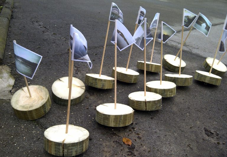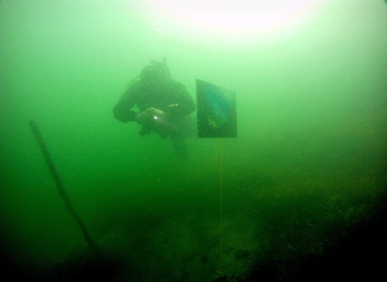 Die Bilder schwebten etwa ein halbes Jahr unterwasser. Wenn die Sicht gut war, konnte man die Bilder aus 5m Entfernung sehen. Mit der Tauchlampe leuchteten sie bereits ab 10 m (dank der reflektierenden Folie, auf denen die Bilder gedruckt waren). Ein Hechtrogner (weiblicher Hecht) laichte an Bild #8 (an der Rückseite ). Ob die Fischkids im Frühjahr schlüpften und das Bild zur Kenntnis nahmen, weiß ich nicht.