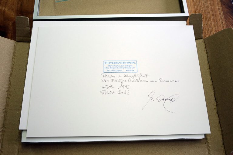 Die Angaben zum Foto (Titel, Entstehungsjahr, Datum des Abzuges) sind auf der Rückseite vermerkt, incl. Signatur.
